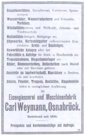 von der Firma Carl Weymann aus Osnabrück geliefert worden.
