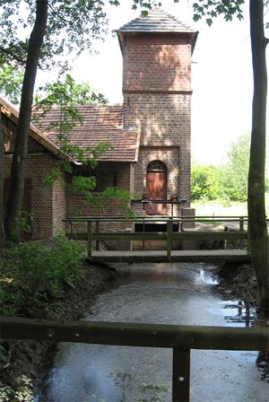 Die alte Wassersägemühle stammt aus den 1890er Jahren und gehört zum Gut Roß, einem landwirtschaftlichen Mustergut das Graf Dr. jur. Max von Landsberg-Velen (1847-1902) in den 80er Jahren des 19. Jhd. anlegen ließ.
